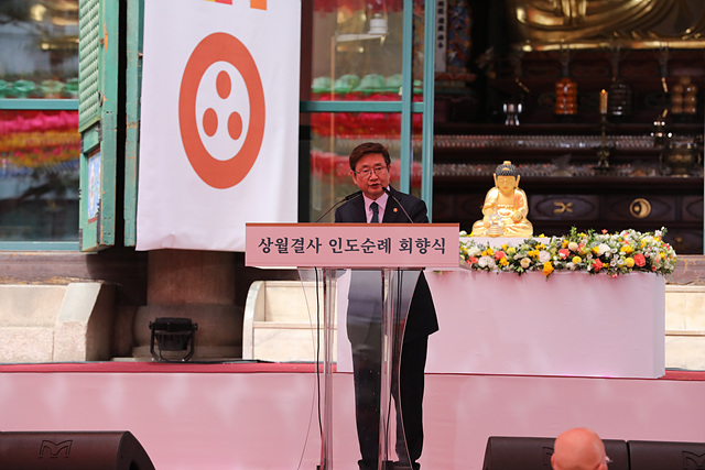 À̹ø ȸÇâ½ÄÀÇ ¸¶¹«¸®´Â Àεµ ¼ø·ÊÀÇ Àǹ̸¦ µÇ»õ±â°íÀÚ ¼ø·Ê ´ëÁß 75¸íÀ» Æ÷ÇÔÇÑ 107¸íÀÇ »ó¿ù°á»ç Àεµ¼ø·Ê´Ü°ú Àü±¹ ±³±¸º»»ç ÁÖÁö, Áß¾ÓÁ¾È¸ÀÇ¿ø, Áß¾ÓÁ¾¹«±â°ü ±³¿ªÁ÷, Á¶°èÁ¾ Á߾ӽ°¡´ëÇб³ ÇÐÀνº´ÔµéÀÌ ¸ðµÎ ÇÔ²² ¡®»ó¿ù°á»ç 108 ¿ø·Â¹®¡¯¿¡ ¸ÂÃç 108¹è¸¦ ÁøÇàÇß´Ù. »ó¿ù°á»ç 108 ¿ø·Â¹®Àº ¡®¸ðµÎ¸¦ Â÷º° ¾øÀÌ ºÎó´ÔÀ¸·Î ´ëÇÏ°í ³»°¡ ¾ÕÀå¼ ºÒ¹ýÀ» ÀüÇÏÀÚ¡¯¶ó´Â »ó¿ù°á»ç ȸÁÖ Àڽ ½º´ÔÀÇ Á¤½ÅÀÌ ¹Ý¿µµÈ °ÍÀ¸·Î Çѱ¹ºÒ±³ ÁßÈï ÀÇÁö¿Í ºÒÀڷμ ²À ÁöÄÑ¾ß ÇÒ »ýȰ ¼Ó ºÒ±³ ¼öÄ¢, »çȸ¸¦ ÇâÇÑ ÀÚºñÇà, ºÒÀڷμÀÇ ±»Àº ½Å½É µîÀ» ´ãÀº °ÍÀÌ´Ù.