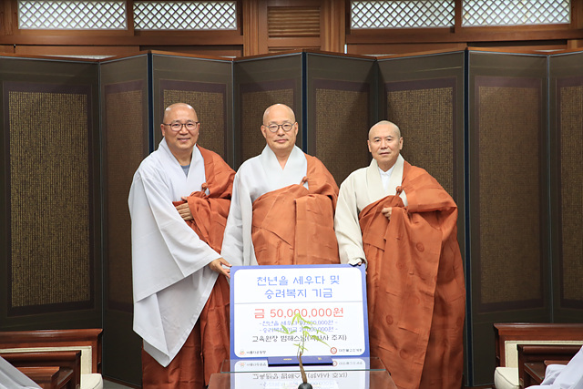 Á¶°èÁ¾ ±³À°¿øÀå ¹üÇØ ½º´ÔÀº À̳¯ ¡®Ãµ³âÀ»¼¼¿ì´Ù¡¯ Á¾´Ü ºÒ»ç¿¡ 3000¸¸ ¿øÀ», ½Â·Áº¹Áö±â±Ý¿¡ 2000¸¸ ¿øÀ» °¢°¢ ±âŹÇß´Ù.