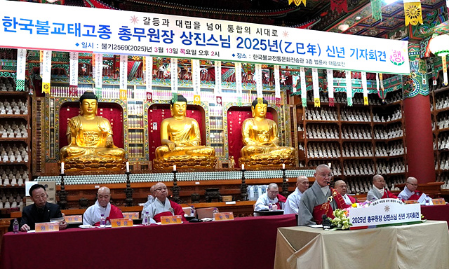 Çѱ¹ºÒ±³Å°íÁ¾ Ãѹ«¿øÀå »óÁø ½º´ÔÀº ºÒ±â 2569(2025)³â 3¿ù 13ÀÏ ¿ÀÈÄ 2½Ã ¼¿ï »ç°£µ¿ Çѱ¹ºÒ±³¹®ÈÀü½Â°ü 3Ãþ ´ëºÒº¸Àü¿¡¼ ¡®2025³â ½Å³â ±âÀÚȸ°ß¡¯À» ¿°í ¡°ÇÔ²²ÇÏ´Â ¼¼»ó ¡®°¥µî°ú ´ë¸³À» ³Ñ¾î ÅëÇÕÀÇ ½Ã´ë·Î¡¯ ¿øÀ¶À¸·Î ÇÔ²²ÇÏ´Â ÅëÇÕÀÇ ÁöÇý¡±¶ó´Â ½½·Î°Ç ¾Æ·¡ ÀüÅë¹®È °è½Â ¹× »çȸ°øÇå Ȱµ¿¿¡ ÁßÁ¡À» µÐ ¡®5´ë ÇÙ½É ÁÖ¿ä Á¾Ã¥ °úÁ¦¡¯¸¦ ¹ßÇ¥Çß´Ù.