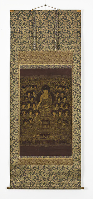 ±¹¸³Áß¾Ó¹Ú¹°°ü ¼ÒÀåÀÇ ¡¸°í·Á ¼ö¿ù°üÀ½º¸»ìµµ(ÍÔÕò â©êÅκëåÜÌß±Óñ)¡¹´Â ¡ºÈ¾ö°æ¡» ¡¸ÀÔ¹ý°èǰ(ìýÛöÌüù¡)¡¹¿¡ ±Ù°ÅÇϸç, ¼±À絿ÀÚ°¡ ±ú´ÞÀ½À» ¾ò±â À§ÇØ 53¸íÀÇ ¼±Áö½ÄÀ» ã¾Æ°¡´Â ³²¹æ¼ø·Ê Áß º¸Å¸¶ô°¡»ê¿¡ °ÅÁÖÇÏ´Â °üÀ½º¸»ìÀ» Ä£°ßÇÏ´Â Àå¸éÀ» µµ»óÈÇÑ ºÒÈÀÌ´Ù. °üÀ½º¸»ìÀº ¹°°¡ÀÇ ¹ÙÀ§¿¡ ÇÑÂÊ ¹ßÀ» ´Ã¾î¶ß¸° ä ¹Ý°¡ºÎÁÂÀÇ ÀÚ¼¼·Î ¾É¾Æ ÀÖÀ¸¸ç, º¸»ì ¾ÕÂÊ ¹ÙÀ§¿¡´Â ¹öµé°¡Áö°¡ ²ÈÈù Á¤º´ÀÌ ³õ¿© ÀÖ°í, °üÀ½º¸»ìÀÇ ½Ã¼±ÀÌ ¸Ó¹«´Â ´ë°¢¼±ÀÇ À§Ä¡¿¡ »ó¹Ý½ÅÀ» ±ÁÈ÷°í µÎ ¼ÕÀ» ¸ð¾Æ °ø¼ÕÇÏ°Ô ÇÕÀåÇÑ ¼±À絿ÀÚ°¡ Ç¥ÇöµÇ¾î ÀÖ´Ù. ÀüÇüÀûÀÎ °í·Á Èı⠼ö¿ù°üÀ½µµ»óÀ» µû¸£¸é¼µµ ¼¶¼¼ÇÑ ÃµÀÇ(ô¸ëý) ¼Ó¿¡ º£Ç®¾îÁø ¿ªµ¿ÀûÀÎ ¿øÇü³ÕÄð¹«´Ì¿Í ¿¬²É¹«´Ì, ÀºÀºÇϰí ǰÀ§ ÀÖ´Â »öä °¨°¢, À±°û¼±°ú ¹®¾ç¿¡ ¼¼·ÃµÇ°Ô »ç¿ëµÈ ±Ý´Ï µîÀ¸·Î ÀýÁ¦µÇ°í ¿ì¾ÆÇÑ ¾Æ¸§´Ù¿òÀ» ±¸ÇöÇØ ³Â´Ù.