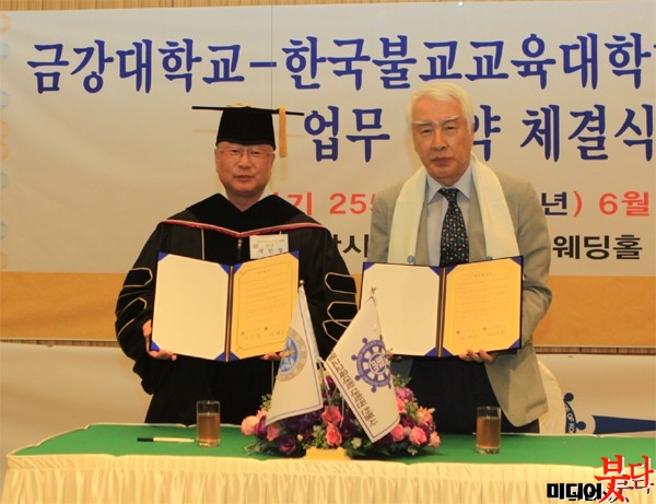 ±Ý°´ëÇб³(ÃÑÀå Á¤º´Á¶)°¡ Çѱ¹ºÒ±³±³À°´ëÇÐ(ÇÐÀå ¼®Àΰæ)°ú 6¿ù 30ÀÏ ¿ÀÈÄ 4½Ã õ¾È¼¼Á¾¿þµùȦ¿¡¼ »óÈ£°£ Çù·Â ¹× Á¤º¸°øÀ¯¸¦ ÅëÇÑ Áö¿ª¹®È À°¼º ¹× ¹ßÀüÀ» À§ÇØ ¾÷¹«Çù¾àÀ» ü°áÇß´Ù. <»çÁø>