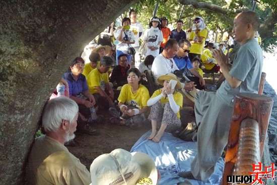 µµ¹ý ½º´ÔÀÌ ÇàÁø Áß ³ª¹« ±×´Ã ¾Æ·¡¿¡¼ Âü°¡ÀÚµé°ú À̾߱⸦ ³ª´©°í ÀÖ´Ù.