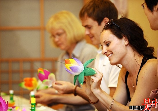 ¹®È»ç¾÷´ÜÀÌ ÁÖÃÖÇÑ ÅÛÇýºÅ×ÀÌ¿¡ Âü°¡ÇÑ ¿Ü±¹ÀÎ ¿©¼ºÀÌ ¿¬²Éµî ¸¸µé±â üÇèÀ» Çϰí ÀÖ´Ù.