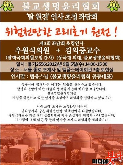 ºÒ±³»ý¸íÀ±¸®Çùȸ´Â ¶Ç ¡®Å»ÇÙ°ú Å»¿øÀü¡¯ Ưº° È«º¸´ëÃ¥ ÀÏȯÀ¸·Î ÀºÆò±¸ °¥Çöµ¿ ¿¸°¼±¿ø(¼±¿øÀå ¹ýÇö ½º´Ô/ º»È¸ ÁýÇàÀ§¿ø)¿¡¼ Å»ÇÙ¿¡³ÊÁö±³¼ö¸ðÀÓÀÇ ±èÀÍÁß ±³¼ö(µ¿±¹´ë ÀÇ´ë)¸¦ ÃÊÃ»ÇØ Å»ÇÙ°ú °ü·ÃÇÑ 60ºÐ Ư°À» Çϰí, À̸¦ ºÒ±³ÅÚ·¹ºñÀüÀ» ÅëÇØ ¹æ¿µÇÑ´Ù. ºÒ±³»ý¸íÀ±¸®Çùȸ È«º¸ ÀÏȯÀ¸·Î ÁøÇàµÇ´Â ÀÌ ÃÊû¹ýȸÀÇ ³ìÈ´Â 9¿ù 9ÀÏ ÀºÆò±¸ °¥Çöµ¿ ¿¸°¼±¿ø¿¡¼ ÁøÇàµÈ´Ù.