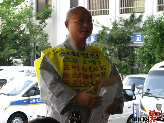 Á¤ ¾¾´Â 9¿ù 10ÀÏ ¿ÀÀü 10½Ã ¼¿ï Á¾·Î °æÂû¼¸¦ ¹æ¹®ÇØ ÀÌ °°Àº °í¹ßÀåÀ» Á¦ÃâÇß´Ù. °í¹ß ³»¿ëÀº 2012³â 3¿ù ¹ýÁÖ»ç ÁÖÁö ¼±°Å¿¡ ´ç¼±µÈ ÇöÁ¶ ½º´ÔÀÌ ¹ýÁÖ»ç À¯±ÇÀÚ ½º´Ô 11¸í µî¿¡°Ô µ·°ú ÇâÀÀÀ» Á¦°øÇÏ´Â µî ¾à 5¾ï ¿ø¿¡ À̸£´Â ±ÝǰÀ» »ìÆ÷Çß´Ù´Â °ÍÀÌ´Ù.