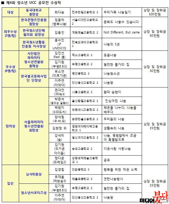 ºÀÀº»ç´Â 2009³âºÎÅÍ ¸Å³â û¼Ò³â UCC °ø¸ðÀüÀ» ½ÃÇàÇϰí ÀÖ´Ù.