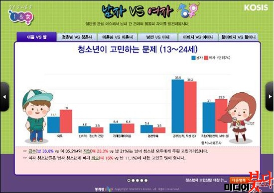 Åë°èû(ûÀå ¿ì±âÁ¾)Àº ¿©·¯ Åë°è ¼Ó¿¡ ³ªÅ¸³ ³²³àÀÇ Â÷À̸¦ Èï¹Ì·Ó°Ô À籸¼ºÇÑ ¡®°°Àº µí ´Ù¸¥ µí Ñû°ú åü¡¯ ÄÜÅÙÃ÷¸¦ 1¿ù 8ÀϺÎÅÍ ±¹°¡Åë°èÆ÷ÅÐ(KOSIS, http://kosis.kr)À» ÅëÇÏ¿© ¼ºñ½ºÇÑ´Ù.