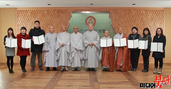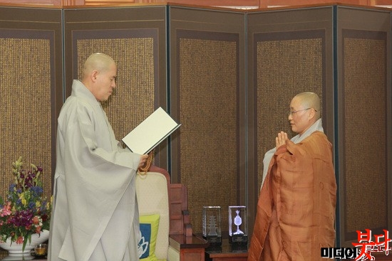 ¼Ò¸²»ç ÁÖÁö Áö¹ü ½º´Ô(¿À¸¥ÂÊ)ÀÌ Ãѹ«¿øÀå Àڽ ½º´ÔÀ¸·ÎºÎÅÍ ¼ö»óÀåÀ» ¼ö¿©¹Þ°í ÀÖ´Ù.