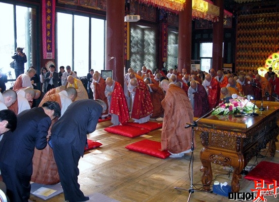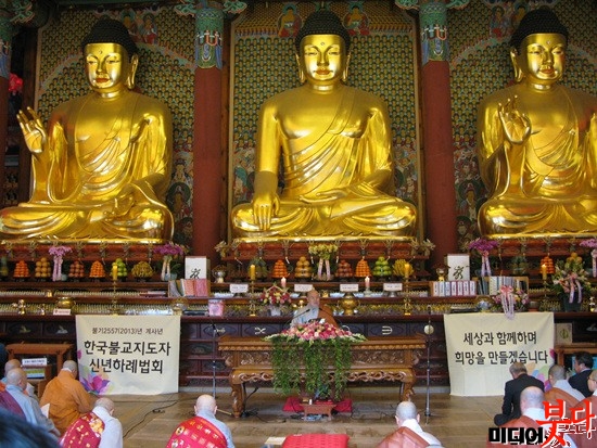 ½Å³âÇϷʹýȸ¿¡ ¸ðÀÎ ´ëÇѺұ³Á¶°èÁ¾À» ºñ·ÔÇÑ Çѱ¹ ºÒ±³ÀÇ Á¾´Ü ¼öÀåµéÀº ºÎó´Ô²² 3¹è¸¦ ¿Ã¸®´Â Åë¾Ë Àǽİú »çºÎ´ëÁß ÇÕµ¿ ¹è·Ê¸¦ Çß´Ù. À̾î ŰíÁ¾ Ãѹ«¿øÀå Àΰø ½º´ÔÀÌ ½Å³â Ãà¿øÀ» Çß´Ù.