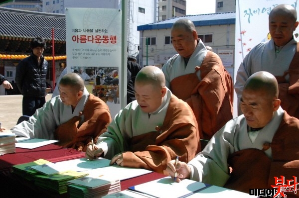 À̳¯ ¹ýȸ ÈÄ Á¶°èÁ¾ Ãѹ«¿øÀå Àڽ½º´Ô°ú Áß¾ÓÁ¾È¸ ÀÇÀå º¸¼±½º´Ô, ±³À°¿øÀå ÇöÀÀ½º´ÔÀ» Æ÷ÇÔÇÑ ¹ýȸ Âü¼® ´ëÁßÀº »ý¸í°á»çÀÇ ½ÇõÀ» À§ÇØ Á¶°è»ç¿¡ ¸¶·ÃµÈ »çÈÄ Àå±â±âÁõ ¼¾à¼¸¦ ÀÛ¼ºÇß´Ù. ÀÌ¾î ³ª´®°á»çÀÇ ½ÇõÀ» À§ÇØ ¡®¾Æ¸§´Ù¿î µ¿Ç࡯¿¡ ¿ù º¸½Ã ÀÏÁ¤¾×À» ±âºÎÇÏ´Â ±âºÎÁõ¼¸¦ Àü´ÞÇß´Ù.