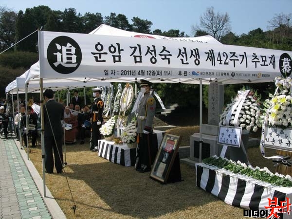 ½º´ÔÃâ½ÅÀ¸·Î´Â À¯ÀÏÇÏ°Ô ´ëÇѹα¹ ÀÓ½ÃÁ¤ºÎÀÇ ±¹¹«À§¿øÀ¸·Î Ç×Àϵ¶¸³ÅõÀï¿¡ ¾ÕÀå¼± ¿î¾Ï ±è¼º¼÷ ¼±»ý(ÅÂÇã ½º´Ô) ¼°Å Á¦42ÁÖ±â Ã߸ðÁ¦°¡ Áö³ 4¿ù 12ÀÏ ¿ÀÀü 11½Ã ¼¿ï µ¿ÀÛ±¸ ±¹¸³ÇöÃæ¿ø³» ÀÓ½ÃÁ¤ºÎ¿äÀÎ ¹¦¿ª¿¡ À§Ä¡ÇÑ ±è¼º¼÷ ¼±»ýÀÇ ¹¦¼Ò¿¡¼ 200¿© ¸íÀÇ »çºÎ´ëÁßÀÌ µ¿ÂüÇÑ °¡¿îµ¥ ¾ö¼öµÆ´Ù.